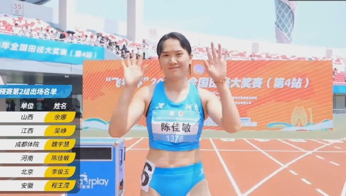 蚌埠站女子100米栏预赛:陈佳敏13秒47第一,夏思凝13秒78第七